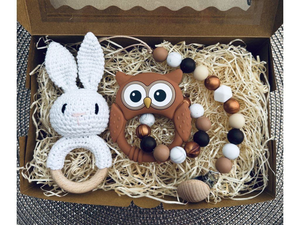 Před použitím veškeré komponenty očistěte vlhkým hadříkem namočeným v mýdlové vodě nebo v přípravku na mytí dětských lahví. Poté nechejte volně uschnou na vzduchu. Nevyvařujte ani nemrazte. Háčkovaná chrastítka pereme ručně v přípravku na jemné prádlo.