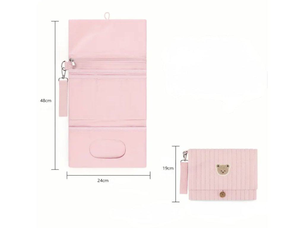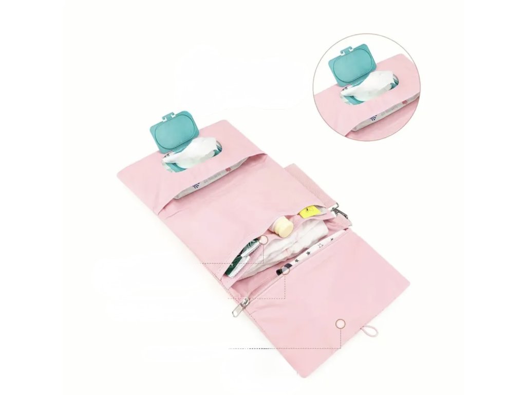 Plenkovník disponuje celkem šesti kapsami – dvěma velkými, určenými zejména na náhradní oblečení a cestovní přebalovací podložku. Potom jsou v něm tři stejně velké menší kapsy na mastičku na opruzeniny, dudlík a další drobnosti a nakonec kapsa s otvorem na vlhčené ubrousky. Zapínání plenkovníku je na gumičku, díky tomu ho můžete naplnit do maxima!