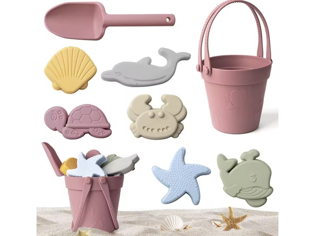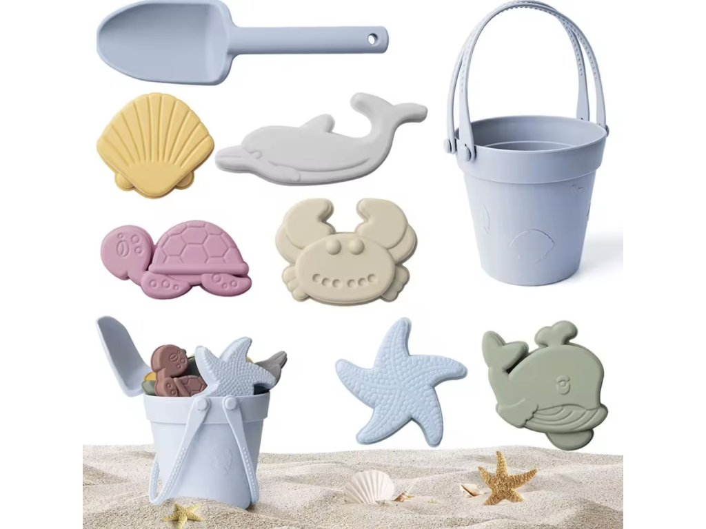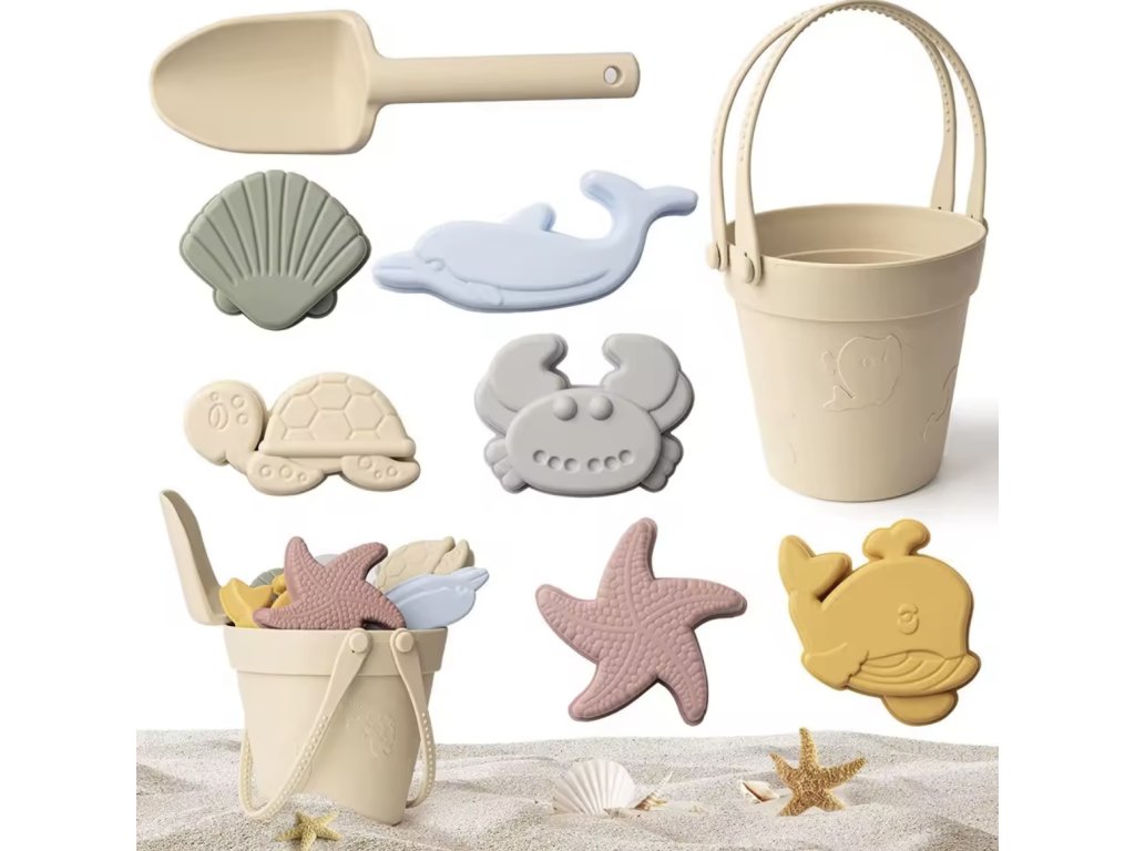 Silikonová sada na písek – kyblík, lopatka a formičky | Mořský svět